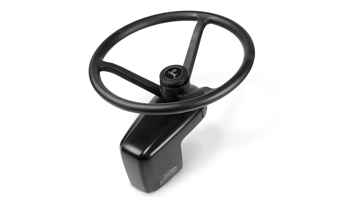Excessive wear on steering components may impact accuracy. Make sure steering system components have proper tolerances. Steer Play setting may improve performance on some machines, but cannot compensate for all wear. After installing AutoTracTM Universal Steering Kit, check steering system every 500 hours for proper tolerance and wear. Operator needs to tighten nut on steering wheel to manufacturer’s specified torque.
