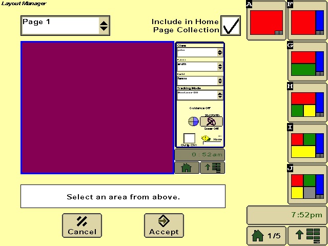 In the final installment, you will learn how to configure a homepage to display your harvest information. To do this you will be using the Layout Manager in your 2630 display. This can be accessed by pressing the Menu Button located in the bottom right corner of the screen and selecting the tab for Layout Manager.